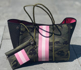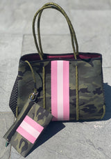 Bubble Gum Pink Stripe Camo Neoprene Bag