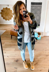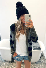 We love the endless options that come with our Camo Cardigan! Easy piece to transition into any season whether its paired with cutoffs or our favorite leggings you won't blend in in our Camo Cardigan! Layer over our White Pocket Tee for the perfect combo.