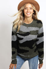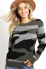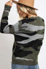Camo Sweater for all of our Camo lovers out there. We carry all of the other camo items so why not add a sweater to the list? We love this one for many reasons! And not just because we are camo obsessed. There will be no blending in when wearing this camo sweater.