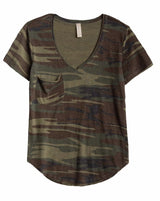 Camo V Neck by Z Supply is a slub knit jersey Pocket Tee with a relaxed patch pocket on the front and flattering v-neck design. With Z Supply's signature camo print making a statement and pairs well with denim.