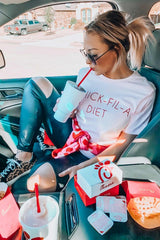 Chick-Fil-A Diet Tee for all of our Chick-Fil-A lovers! You'll be wearing this on repeat...guaranteed ;) Printed on our fave Bella Canvas Tee. True to size. Size up for an oversized boyfriend fit. Also available in a Sweatshirt and matching kids option!
