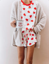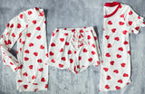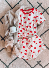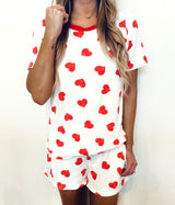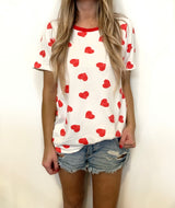 All You Need is Love Tee features a round neckline with red contrast and curved hem. Pair with our All You Need is Love Shorts for the perfect matching set!