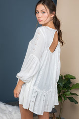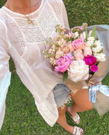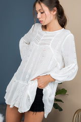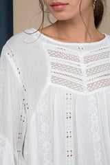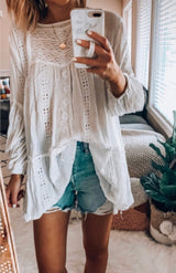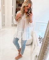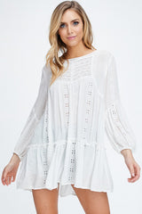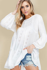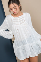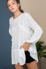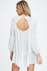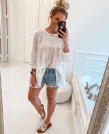 Embroidered Tunic features a bell sleeve and embroidery through out. One of our favorite items to wear as a swim coverup or with your favorite cut offs.