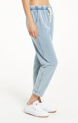Ready to upgrade your old sweats or sweatpants? This relaxed fit jogger is made from Z Supply's French Terry fabric featuring a mineral wash to give it a washed denim look that makes laid back style look effortlessly cool! The jogger features side slash pockets and an elastic waistband with a drawcord. Relaxed Fit. Model is wearing Size Small.