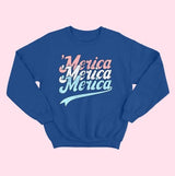 ‘Merica 'Merica 'Merica Sweatshirt features a pastel 'Merica 'Merica 'Merica print on front. True to size. Size up for a boyfriend fit. Also available in a Tee.