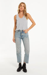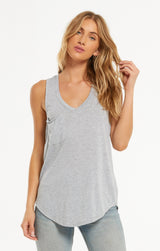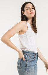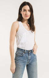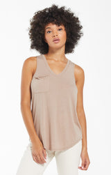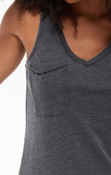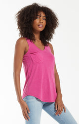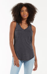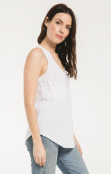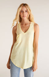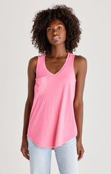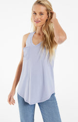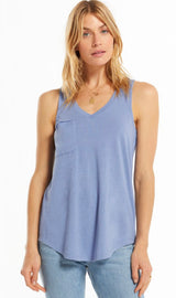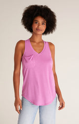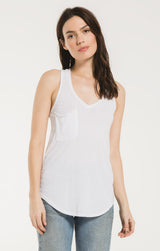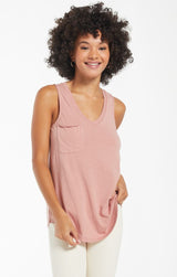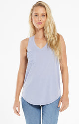 Beat the heat in this lightweight, relaxed fitted racer tank by Z Supply. If you love their pocket tee you'll love their tank for those warmer months! Made from their Signature Burnout jersey fabric, this tank features a slouchy chest pocket, a v-neckline and curved hem. While their signature burnout fabric adds texture and softness; the lighter colorways can be semi-sheer.