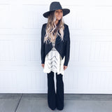 100% Polyester // Knit 70% Rayon / 25% Nylon / 5% Spandex Model is 5'5" wearing a Small and paired with our Shaggy Tiered Vest in Black