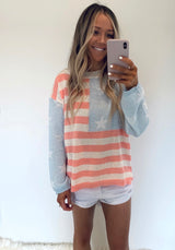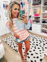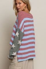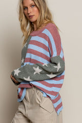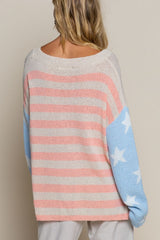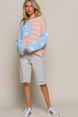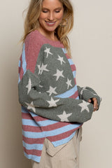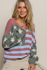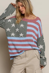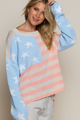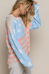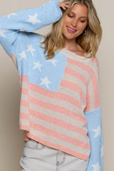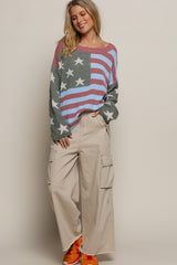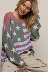 God Bless America Sweater features an oversized fit and a faded flag print. Size down for a less oversized look.