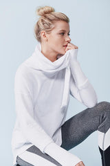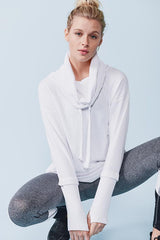 Stay warm in this stylish pullover! It features a cowl neck with drawstring closure so you can adjust the opening width, as well as ribbed extension accent on the hands (with thumb holes to keep your wrists warm) and on the bottom hem. Mineral wash. Supersoft brushed inner lining.