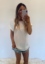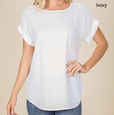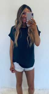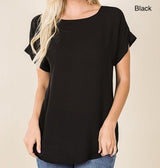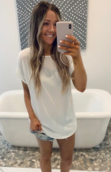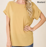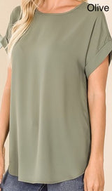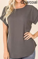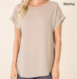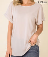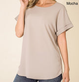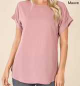 Modern Crew Neck Top features a crew neck with rolled sleeves. This item is the easiest option we have (besides the Modern V Neck option) to dress up or down and layer! Try it with your favorite skirt, cut offs and skinny jeans with sandals or heels. Promise you're going to love it!