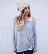 Off The shoulder Sweater features a wide neck so it can be worn 2 ways. Wide Neck or Off The Shoulder. Light Weight. Knot front for style shown, does not come knotted ;) Similar to our off the shoulder top but light weight sweater material. Loose Knit. Semi-Sheer. Layered over our perfect basic tank and Ruffle Me Pretty Tunic.
