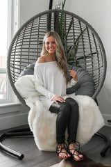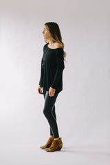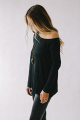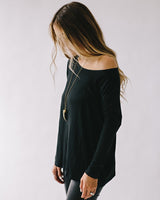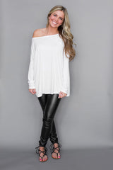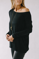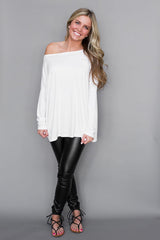 Our off the shoulder top is meant to fit tight around your arms with a boxy loose fit. Can be worn off the shoulder or wide neck...we prefer off the shoulder. Tie up to create a tighter fit or wear loose and tucked into your pants, either way this is the perfect go to top!