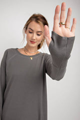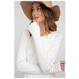 You'll love our Ribbed Knit Thumbhole Tunic! The perfect piece to layer under during cooler months or with leggings or shorts for daily wear. Features a rib knit with thumbhole and rounded hem.
