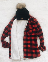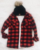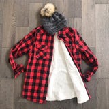 Sherpa Fleece Lined Flannel Jacket is one of Gunny Sack and Co's Best Selling items. Featuring a fleece sherpa lining in the body of jacket with unlined sleeves to give a less bulky fit. Button up style. Layer with our favorite Show Some Stripes Top and Beanie for the perfect Winter or Camping Go-To Outfit.