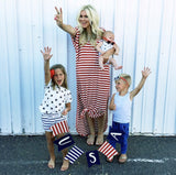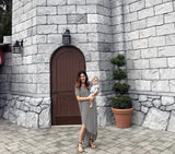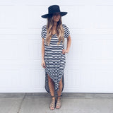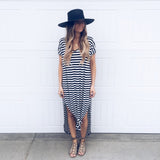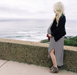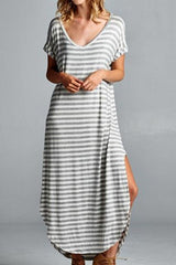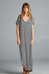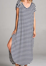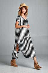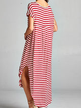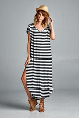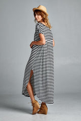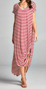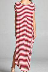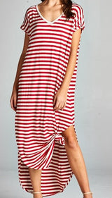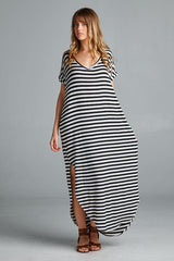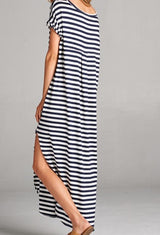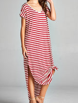 Striped Maxi Dress featuring a slit on each side. Go with the classic maxi dress style or tie it in a knot.